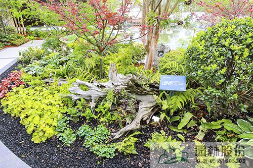 走过沉水桥廊,岸边,是清静淡雅的幽兰花境,腐木横卧、蕨类幽幽,枯枝为篱、幽兰待放,木屑铺地、玉簪窜出,陶渊明笔下的“幽兰生前庭,含薰待清风。清风脱然至,见别萧艾中”的幽静生活跃然眼前。