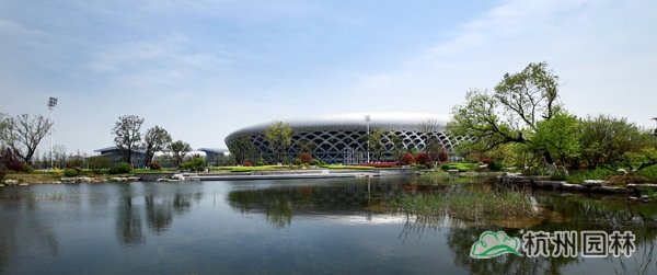 徐州奥体中心景观BT工程一标段得到了专家组的一致认可,称其“是一件精湛的艺术品!”该工程位于徐州市新城区奥体中心,主要包括给排水、硬质铺装、绿化景观、园林小品及景观照明工程,工期381天,于2014年6月26日顺利竣工验收。奥体中心主题建筑风格采用中式建筑,气势宏伟,庄重大方,古朴有活力。采用了中国现代古典园林与英国自然式风景园林相互结合的优化方案进行施工,使景观效果与酒店完美的融合一体的基础上,更营造出“亦古亦今,中西混搭”别样园林风情。由于徐州地处中国东部属于亚热带季风性湿润气候,四季分明,为营造景观效果提供了有利的自然条件。植物选择上应用了大量的香樟、桂花等乡土树种,同时还引入黑松、老紫薇桩、银杏等名贵树种,植物品种多达250余种,在植物配置上充分考虑奥体中心的景观效果的同时遵循植物生态性、多样性、地域性、季节性原则,进行多层次、多品种植物配置,营造出四季有景、处处是景,且景色不同的自然景观效果。